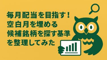 投資記録毎月配当を目指す!空白月を埋める候補銘柄を探す基準を整理してみた 「日本株だけで毎月配当は可能?」というテーマで、保有銘柄をもとに配当カレンダーを作成した前回の記事では、月ごとの配当の偏りや“空白月”の存在が見えてきました。今回はその続編として、空白月を埋めるための候補銘柄をどう選ぶか?について、筆者なり... 2025.10.18投資記録